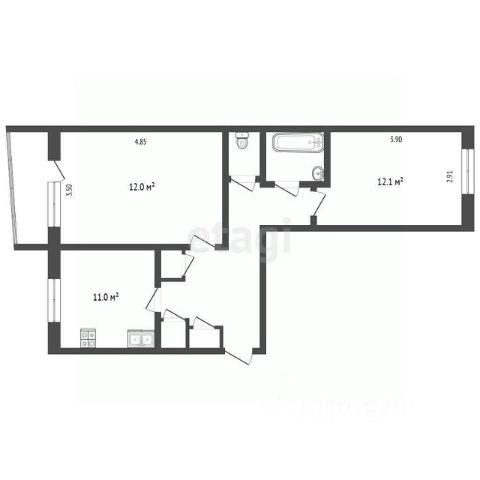 Комнаты удалены друг от друга, имеют площади 14,7 кв.м., 11,3 кв.м.