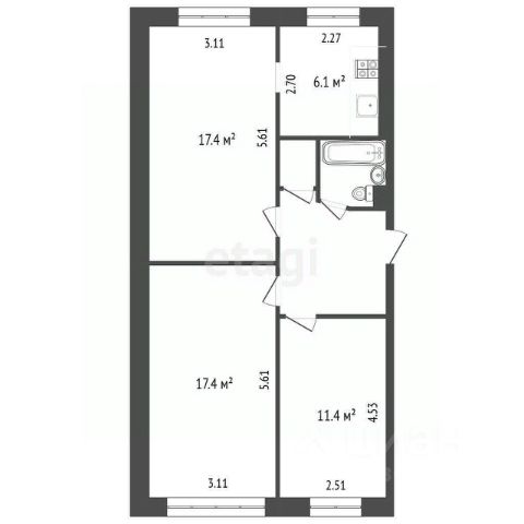 🔷 Средняя цена за м2:109 тыс. ₽/м²