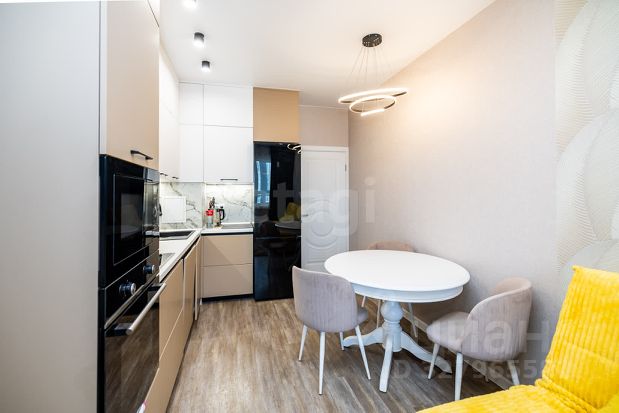 Вся квартира оборудована техникой для комфортного проживания: два телевизора (55 и 65 дюймов), стиральная и сушильная машинки, встроенная микроволновая печь, духовка, холодильник, варочная панель, вытяжка и посудомоечная машинка на 60.