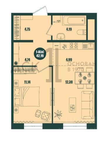 Продаётся 1-комнатная квартира в строящемся доме (Дом 4.2), срок сдачи: I-кв. 2026, общей площадью 42.01 кв.м., на 9 этаже. Новый жилой комплекс "Крылов" от застройщика "ДСК-1" расположен по адресу: г. Сургут, улица Крылова.