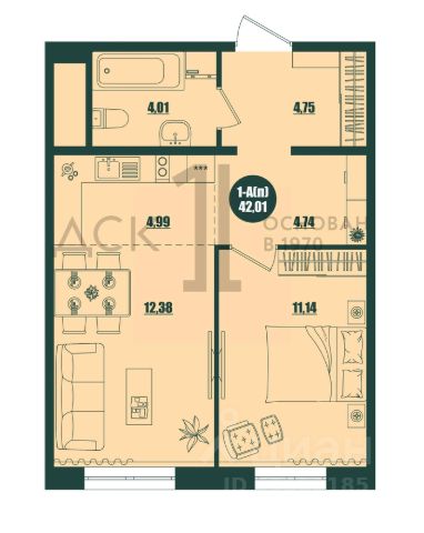 Продаётся 1-комнатная квартира в строящемся доме (Дом 1.1), срок сдачи: IV-кв. 2025, общей площадью 38.01 кв.м., на 1 этаже. Новый жилой комплекс "Крылов" от застройщика "ДСК-1" расположен по адресу: г. Сургут, улица Крылова.