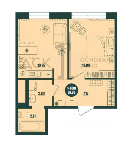 Продаётся 1-комнатная квартира в строящемся доме (Дом 4.2), срок сдачи: I-кв. 2026, общей площадью 37.78 кв.м., на 6 этаже. Новый жилой комплекс "Крылов" от застройщика "ДСК-1" расположен по адресу: г. Сургут, улица Крылова.