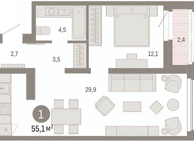 1-комн. квартира с предчистовой отделкой в ЖК "Нефть" на 3 этаже. Общая площадь: 55.1 кв.м. Высота потолков 2.7 м. Дом монолитный, многоподъездный, переменной этажности, от 7 до 17 этажей. Квартира находится в 3-й секции высотой 17 этажей в корпусе 1. На этаже 8 квартир. В подъезде 1 пассажирский и 1 грузовой лифт. Окончание строительства - 2 квартал 2027 года. Оформление сделки по договору долевого участия. Квартира с кухней-гостиной и одной спальней в квартале "Нефть". Особенности планировки: лоджия, предчистовая отделка. квартиры в нашей базе: НФТ01-Ж3.3.6. Квартал "Нефть" построят в микрорайоне "нефтяников". Квартал состоит из четырёх жилых домов 7 — 9 этажей с акцентной башней в 17 этажей, подземными автостоянками и помещениями коммерческого назначения. Квартал находится в юго-западной части Сургута на пересечении Набережного проспекта и улицы Артёма. В районе уже сформированная инфраструктура. Рядом расположены три детских сада, университеты, парк и спортивная база. На первых этажах квартала спроектированы коммерческие помещения под повседневные сервисы для жителей: магазины, кафе, аптеки и другие полезные функции. Дом имеет переменную высотность 717 этажей. Секции высотой 7-9 этажей подразумевают небольшое количество соседей, спокойствие и приватность. Башня высотой в 17 этажей предлагает более динамичный характер проживания, здесь будет комфортно любителям активного городского ритма жизни. Дворы приватные и предназначены только для жителей. По стандартам Брусники зелень занимает 70% территории. В квартале "Нефть" озеленение выполнено по принципу долголетия ландшафта: оно плотное, разнообразное и многоярусное. Самый верхний ярус — взрослые деревья со сформированной кроной и высокие кустарники, ниже располагаются массивы кустарников среднего размера, нижний ярус — травы, многолетники и газон. Все растения подобраны с учётом сезонности и календаря цветения и сурового климата северного города. Осенью цвет ландшафта обеспечивает листва деревьев и кустарников, летом — цветение многолетников, зимой — вечнозелёные хвойные растения и кустарники с декоративными свойствами стеблей. #2t1iSb