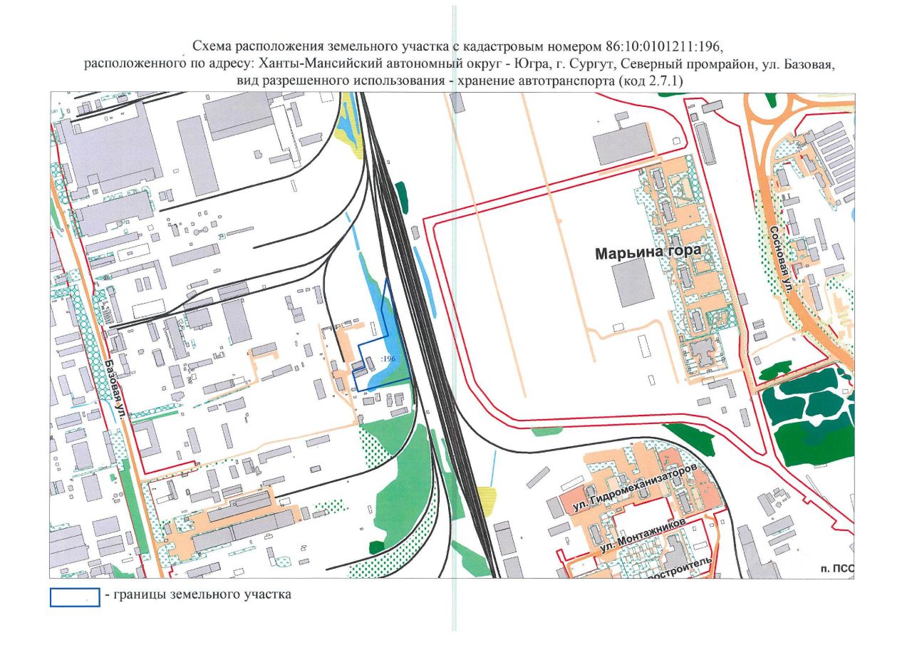 Земельный участок с кадастровым номером 86:10:0101211:196, площадью 16436 кв. м, местоположение: Ханты-Мансийский АО Югра, город Сургут, улица Базовая, категория земель земли населенных пунктов, вид разрешенного использования хранение автотранспорта (код 2.7.1). Аренда земельного участка 58 месяцев, срок строительства объекта 29 месяцев.