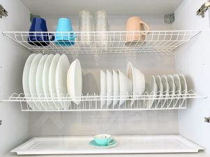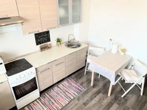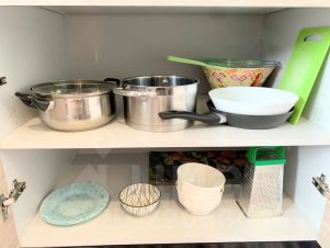 - удобная кухня, где можно приготовить все, что захотите: есть холодильник, микроволновка, чайник, варочная панель, духовой шкаф, вытяжка; а также полный набор посуды для приготовления и сервировки стола;