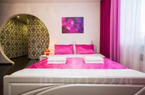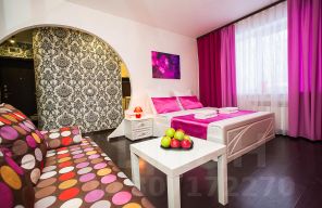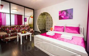 Красивая яркая квартира с необычным дизайном. Мебель, техника, сантехника и остальная комплектация - все новое. В комнате два двуспальных места - большая кровать с ортопедическим матрасом и раскладной диван.