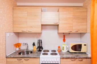 Компактная кухня оборудована современным кухонным гарнитуром. Присутствует вся необходимая для домашнего проживания техника и посуда. Уютная обеденная зона располагает к приятной трапезе.
