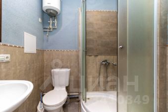 Ванная комната с душевой кабиной и средствами личной гигиены.