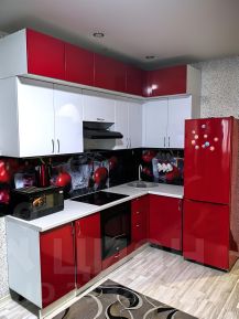 Кухня с индукционной варочной плитой, посудомоечной машиной, холодильник, чайник, вся необходимая посуда и кухонные принадлежности.