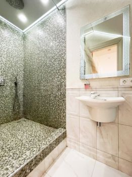 - Совмещённый санузел с душем для гостей.
