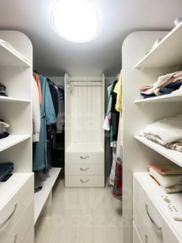 - Одна из комнат оборудована большой гардеробной, что позволяет организовать хранение одежды и аксессуаров без ущерба для пространства.