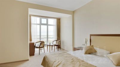 Однокомнатный номер площадью 22-24 кв. М на 21/22 этаже отеля с двуспальной кроватью 160*200 или 180*200 и панорамным окном, подходит как для одноместного, так и для двухместного проживания.