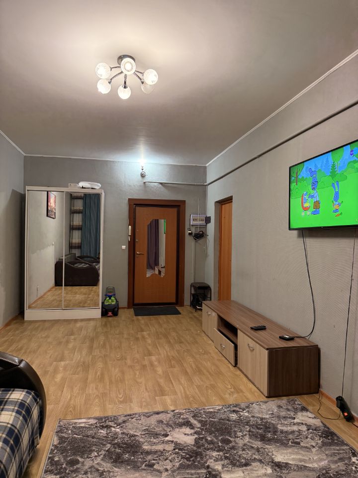 В квартире выполнен косметический ремонт, есть вся необходимая мебель как на кухне, так и в комнате. На кухне 12 кв. м можно с удобством готовить, а в жилой площади 18 кв. м — отдыхать. Санузел совмещенный, оборудован современной душевой кабиной. Из техники в наличии: холодильник, телевизор и стиральная машина, поэтому все готово для вашего комфортного проживания.