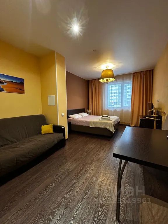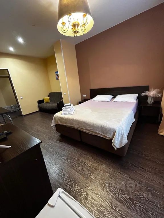 Просторная квартира-студия с большой двуспальной кроватью с ортопедическим матрасом и раскладным диваном.