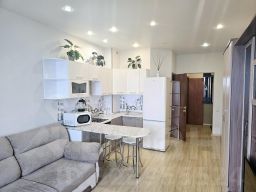 Квартира оборудована всем необходимым для комфортного проживания: диван, кухонная зона, собственная ванная комната и туалет.