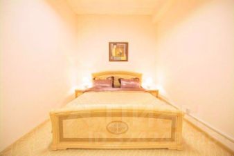 В спальне: двуспальная кровать, тумбочки, пуфик, туалетный столик с зеркалом.