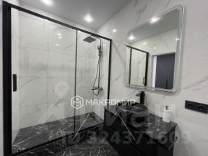 Отделка: Кварцвинил на полу, натяжные потолки, продуманное точечное освещение. Санузел с отделкой под мрамор, душевой кабиной и стильной черной сантехникой.