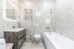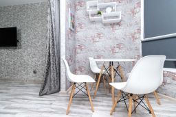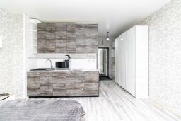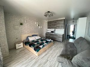 Просторные апартаменты студия с большой двуспальной кроватью. Всегда чистое постельное белье и полотенца. Кухня со всей необходимой техникой: холодильник, микроволновая печь, плита, чайник. Ванная комната с ванной и средствами личной гигиены. Телевизор, WI-FI. Стиральная машина, утюг, фен, сушилка для белья, гладильная доска.