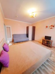 В апартаментах возможно размещение до 6 гостей, спальные места - раскладной диван и две двуспальные кровати. На кухне есть вся необходимая техника и посуда: микроволновая печь, электрический чайник, электрическая варочная панель, холодильник. К услугам гостей: стиральная машина, бесплатный высокоскоростной интернет, кабельное телевидение.