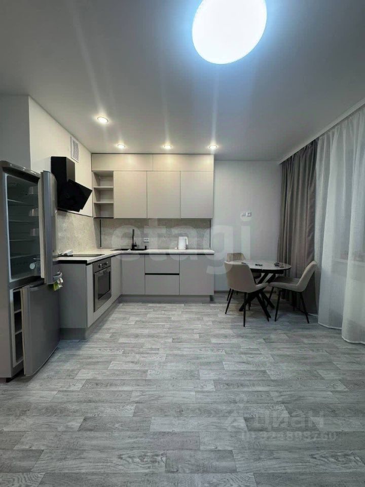 Квартира полностью готова к заселению и обставлена необходимой мебелью и техникой: здесь есть двуспальная кровать, вместительный холодильник и стиральная машина. Пространство организовано по принципу совмещенной кухни-гостиной, что создает ощущение простора и удобно для повседневной жизни и приема гостей.