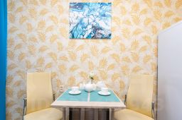 Яркая аппетитная кухня оснащена современным гарнитуром. Присутствует вся нужная для приготовления пищи бытовая техника и полный комплект посуды на всех гостей. Обеденная зона располагает к неспешной трапезе в приятной компании и душевному чаепитию.