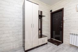 Уютная светлая спальня с двуспальной кроватью с ортопедическим матрасом гарантирует качественный отдых и сон. Светоизоляцию обеспечат плотные портьеры. Вместительный шкаф с зеркальными створками послужит для размещения вещей. Для полного комфорта преду