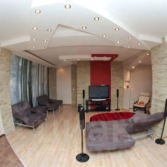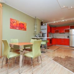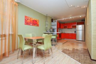 Однокомнатные апартаменты подойдут для размещения 5 человек. Спальные места: двуспальная кровать, 3 раскладных дивана. Имеется все необходимое для комфортного проживания: высокоскоростной Wi-Fi, цифровое TV с кабельными каналами, стиральная машина, фен, утюг. На кухне: плита, холодильник, чайник, СВЧ-печь, посуда и кухонные принадлежности. Санузел с ванной. Постельное белье, полотенца и средства личной гигиены предоставляются.