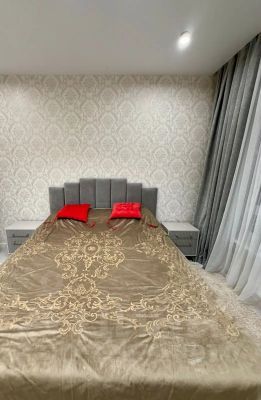 Квартира полностью меблирована и готова к проживанию. В комнате и на кухне есть вся необходимая мебель, а также вся бытовая техника: холодильник, телевизор и стиральная машина. Ванная комната оборудована душевой кабиной, все выполнено в современном стиле.