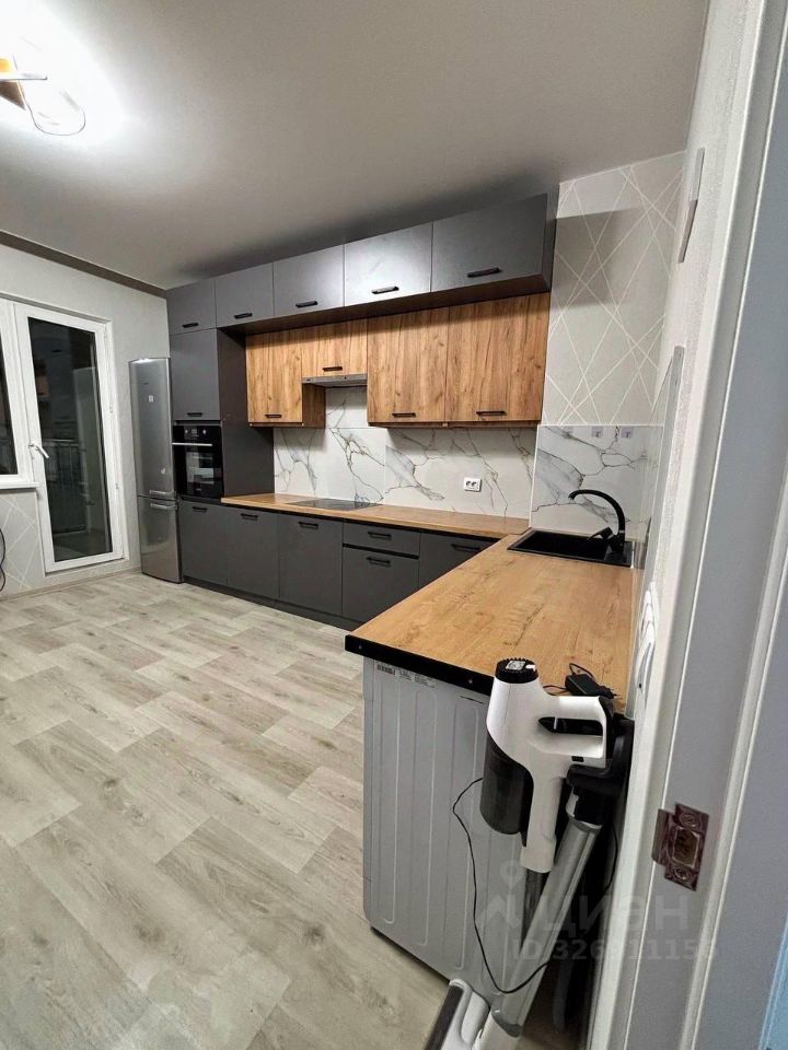 -Кухня: варочная панель, духовой шкаф, посудомоечная машина, стиральная машина, холодильник с совмещенной морозильной камерой.