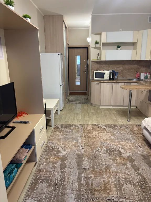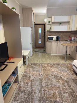 Уютная студия в развитом районе города. В шаговой доступности ж/д вокзал, торговые центры и т. д. Двор оборудован детской площадкой, спортивной зоной. Рядом территория нового парка "крылов". В квартире есть всё необходимое для комфортного проживания.