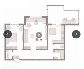 Площадь: 61,1 кв. м — комнаты изолированные, просторная кухня.