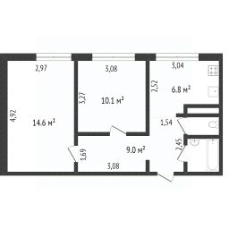 2-комнатная, 45,7 м², 3/9 этаж | Всё для комфортной жизни | Готова к заселению