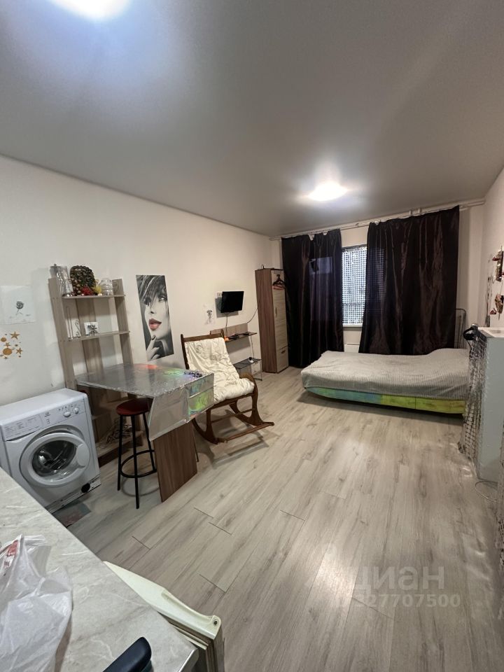 Сдаётся стильная студия площадью 29 кв. м с дизайнерским ремонтом в доме, построенном в 2018 году. Квартира находится на первом этаже четырёхэтажного панельного дома. Высота потолков 2.8 метра, окна выходят на улицу, что обеспечивает хорошее естественное освещение.