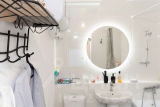 В гостиной установлен большой диван и обеденный стол с четырьмя стульями. Из окон открывается вид на улицу, что добавляет свет и атмосферу уюта. В спальне большая кровать с мягким покрывалом и свежим постельным бельем, комплектами полотенец и уютными халатами с одноразовыми тапочками.