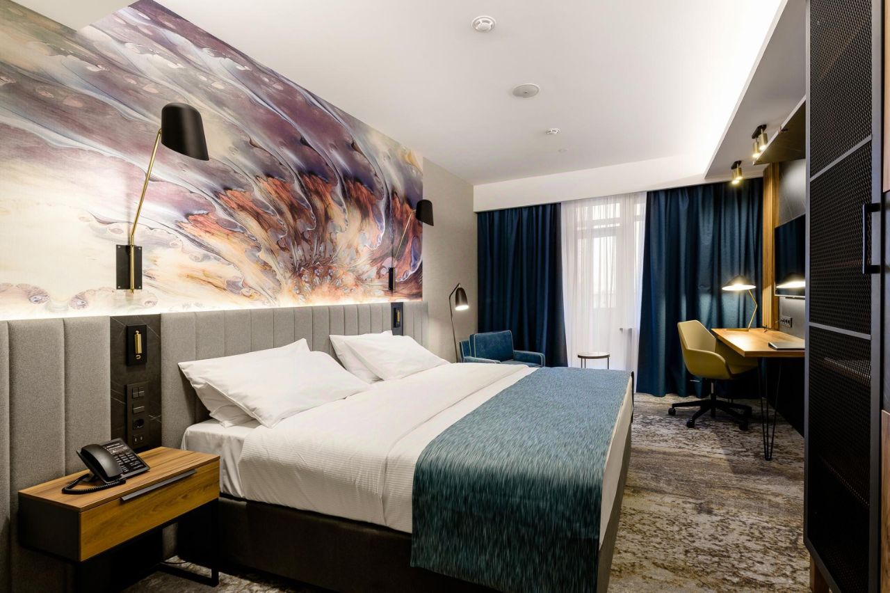 В отеле 102 комфортабельных одноместных и двухместных номеров, оформленных в лаконичном европейском стиле. Все номера оснащены удобной мебелью, просторной ванной комнатой, телефоном, системой климат-контроля, телевизором, Wi-Fi, мини-баром, сейфом для ноутбука, феном. Гостям отеля предлагается меню подушек.