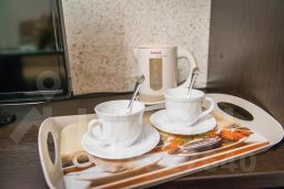 Очень уютный и светлый номер с отдельной прихожей и ванной комнатой для комфортного проживания одного гостя или семейной пары. Номер оснащен большой двухспальной кроватью, цветным ЖК-телевизором, телефоном, холодильником. Так же в номере Вы найдете чайник и чайную пару. В номере есть все необходимое для работы - письменный и журнальный столики. В стоимость номера входит: халат, тапочки, косметический набор для душа, губка для обуви и фен.