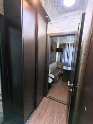 - Зал: Большой, новый смарт телевизор, стенка, огромный диван, большой шкаф, прикроватный столик.