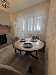 Сдаётся светлая уютная квартира 55,2 м2 со свежим современным ремонтом. Вся мебель и техника абсолютно новые, квартира укомплектована всем необходимым для комфортного проживания. Кухонный гарнитур с встроенной техникой, имеется посудомоечная машина, также на кухне расположена уютная обеденная зона. В гостиной раскладной диван на два спальных места и вместительный шкаф. В спальне двуспальная кровать с ортопедическим матрасом, шкаф для хранения вещей. Санузел раздельный, есть бойлер на время отключения горячей воды.
