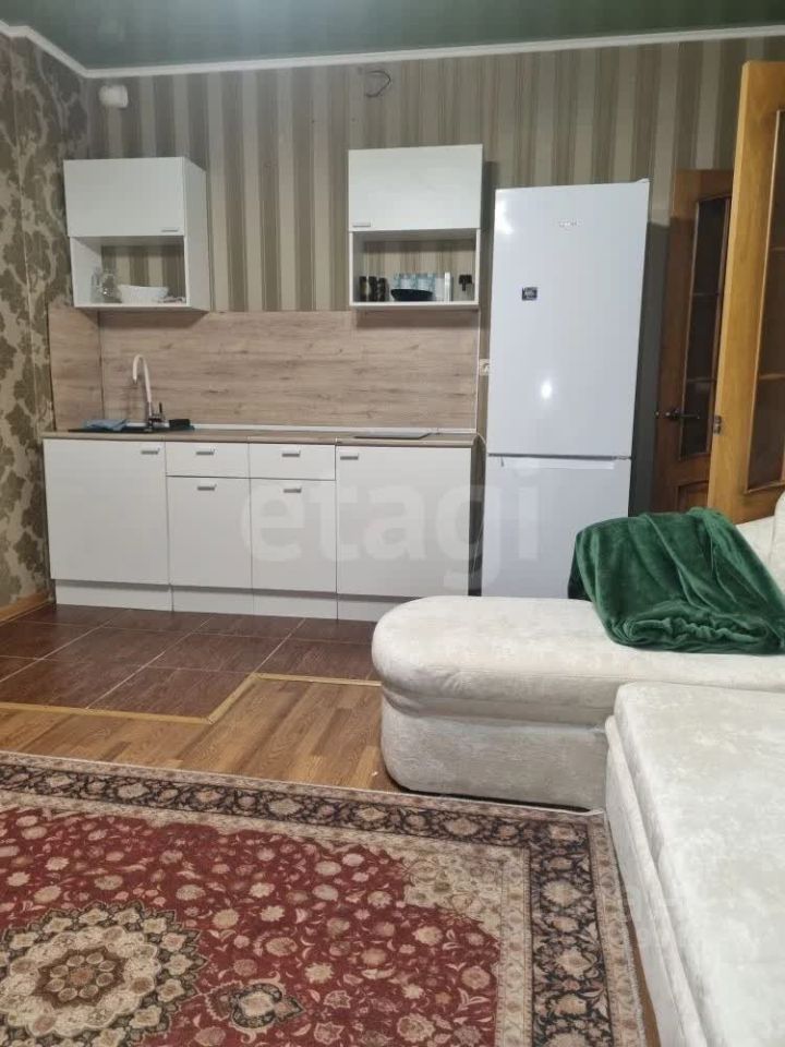 Сдается 2-х комнатная квартира, перепланированная в кухню-гостиную, две спальни. Ремонт косметический, есть теплый пол в кухонной зоне (кухонного гарнитура нет), на стена обои, пол-ламинат, линолеум, в гостиной и спальне натяжной потолок, сан/узел раздельный (кафель). В квартире остается огромный диван, шкаф-купе в прихожей, система хранения в спальне (книжные шкафы, комод, шкаф-купе, компьютерный стол).