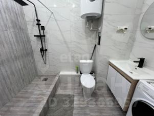 Санузел совмещённый, интерьер выдержан в современном стиле.