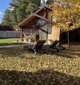 К Вашим услугам: гостиная с камином и оборудованной кухней и несколькими зонами отдыха: на улице - крытая терраса с мангалом и большим столом на 8-10 человек; у камина на большом диване - прекрасное место отдыха после бани; на втором этаже в большой гостиной под высоким сводом крыши - лаундж зона с диваном и телевизором; открытый балкон с красивым видом на лес и озеро.