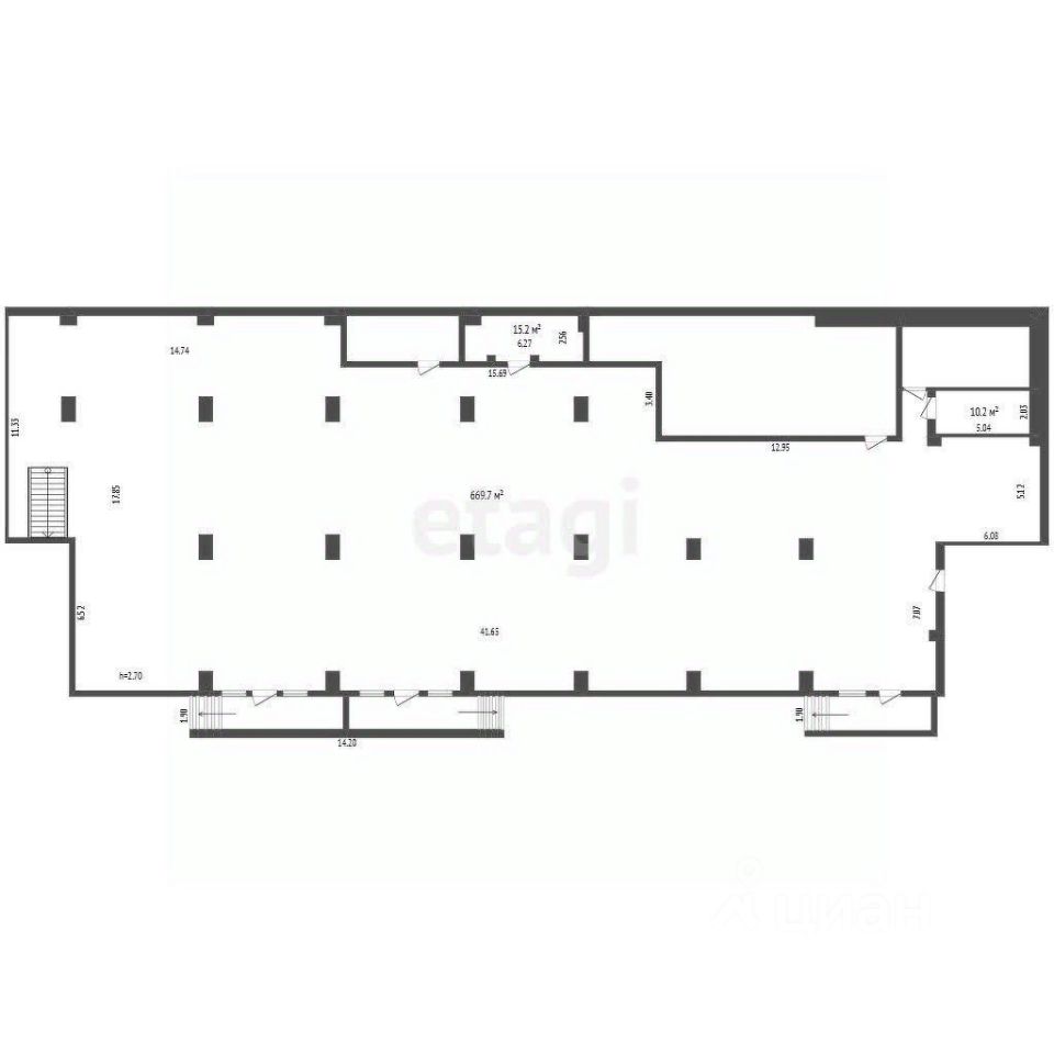 Коммерческое помещение свободного назначения площадью 695,1 кв.м расположено на цокольном этаже ТЦ "Фараон", специализирующегося на продаже мебели. Объект идеально подходит для розничной торговли, склада или офиса благодаря продуманной планировке и удобной локации. Пространство разделено на торговую зону (основную площадь), складские помещения, комнату отдыха и санузел, что обеспечивает комфортную организацию работы. Два отдельных входа — центральный и через склад — позволяют оптимизировать логистику и разграничить потоки клиентов и поставщиков.
