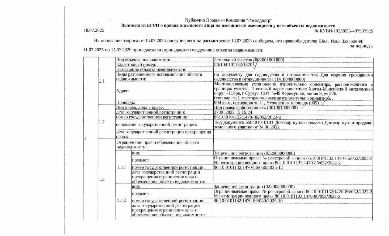 Должник: Шеля И.З., собственник: Шеля И.З. Лот: Земельный участок (земли населенных пунктов, для садоводства и огородничества) площадь 904 кв.м., кадастровый номер: 86:10:0101132:1470, г. Сургут, СНТ 49 Черемушки, линия 9, уч.22б., н/ц: 857820 р, з-к: 128673 р., код: 0001, рег. 25-401;
