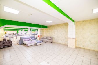 Коммерческое помещение свободного назначения площадью 695,1 кв.м расположено на цокольном этаже ТЦ "Фараон", специализирующегося на продаже мебели. Объект идеально подходит для розничной торговли, склада или офиса благодаря продуманной планировке и удобной локации. Пространство разделено на торговую зону (основную площадь), складские помещения, комнату отдыха и санузел, что обеспечивает комфортную организацию работы. Два отдельных входа — центральный и через склад — позволяют оптимизировать логистику и разграничить потоки клиентов и поставщиков.