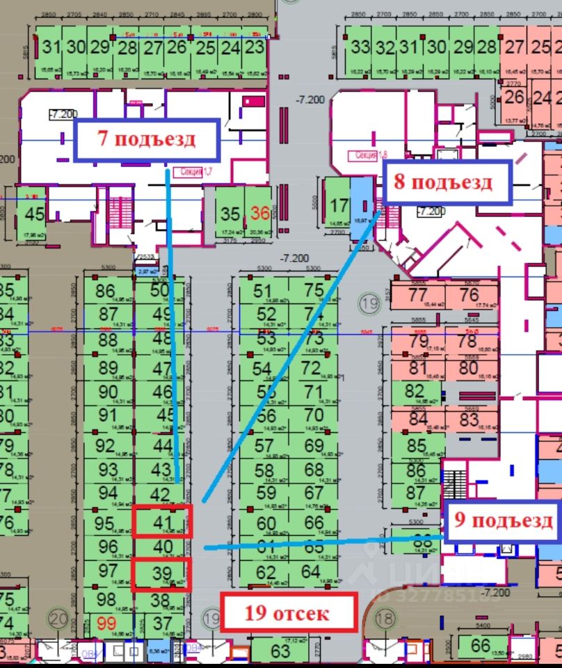 паркинг 41 отсек 19 (вблизи 7-9 подъездов) (-2 этаж) - 600 000р