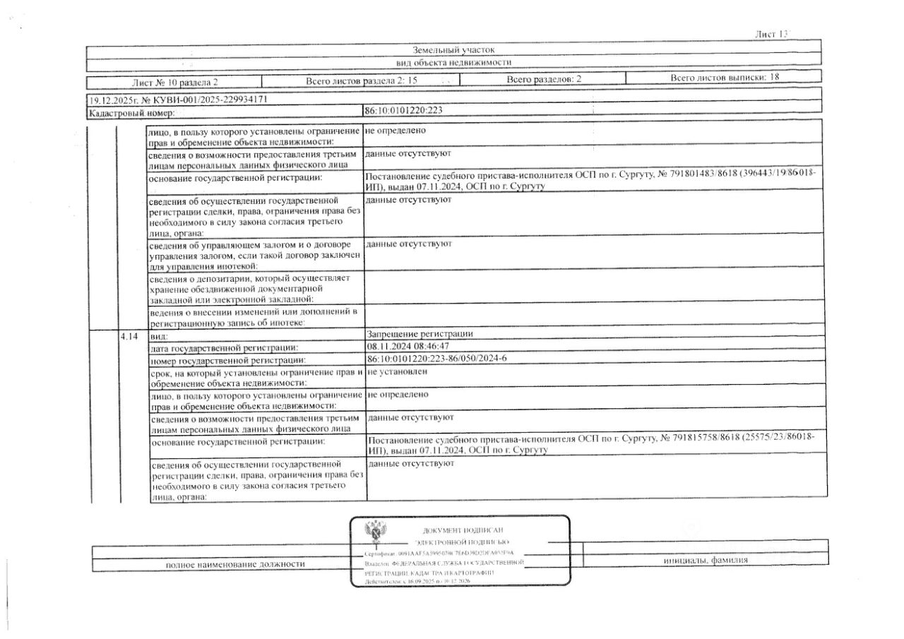 Должник: Куроптев Ю.В., собственник: Куроптев Ю.В. Лот: Земельный участок (земли населенных пунктов, для садоводства и огородничества), площадь 500 кв.м., кадастровый номер: 86:10:0101220:223, г. Сургут, ПКС "Крылья Сургута", ул. 2 (Пихтовая), уч. 7, (В соответствии с п. 21.1 ст. 26 ФЗ 218 "О государственной регистрации недвижимости" в ЕГРН отсутствуют сведения о местоположении границ данного земельного участка, что является основанием для приостановления процедуры государственной регистрации права собственности. Настоящим участники торгов уведомляются что обязанность по установлению границ земельного участка возложена на победителя аукциона, все расходы на проведение данной процедуры производятся силами и средствами победителя аукциона и МТУ Росимущества не компенсируются), н/ц: 690900 р., з-к: 103635 р., код: 0001, рег. 26-70-ГМУ;