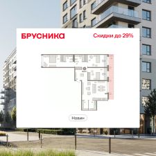 Квартира с кухней-гостиной и тремя спальнями в квартале "Новин". Особенности планировки: балкон, мастер-спальня, окна на две стороны, постирочная, предчистовая отделка, разнесённые спальни.