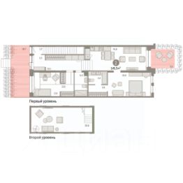 Двухкомнатная квартира от застройщика с предчистовой отделкой в ЖК "Новин" на 1 этаже. 2-уровневая квартира, планировка позволяет организовать индивидуальное пространство для каждого члена семьи. Общая площадь: 145.46 кв.м., жилая: 36 кв.м., площадь просторной кухни-гостиной: 25.6 кв.м. Квартира - распашонка, без проходных комнат, окна выходят на paзные стороны дома. В квартире два балкона, два совмещенных санузла. Наличие террасы площадью 19.7 кв.м. в квартире дает возможность для создания зон отдыха в кругу семьи и друзей. Высота потолков 2.74 м.