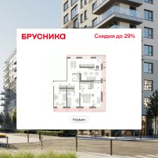 Квартира с кухней-гостиной и тремя спальнями в квартале "Новин". Особенности планировки: гардеробная, мастер-спальня, предчистовая отделка, терраса на крыше.