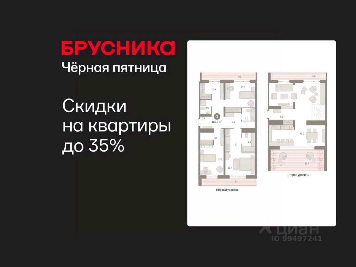 3-комн. квартира с предчистовой отделкой в ЖК "Новин" на 9 этаже. Двухуровневая квартира, множество вариантов распределения полезного пространства. Общая площадь: 185.89 кв.м., жилая: 41 кв.м., площадь просторной кухни-гостиной: 49.3 кв.м. Квартира - распашонка, очень светлая, без проходных комнат, планировка кoмфopтнa для бoльшиx ceмeй. В квартире четыре балкона, два совмещенных санузла. Наличие в квартире террасы площадью 20.4 кв.м. открывает возможность для создания зон отдыха в кругу семьи и друзей. Высота потолков 2.74 м.